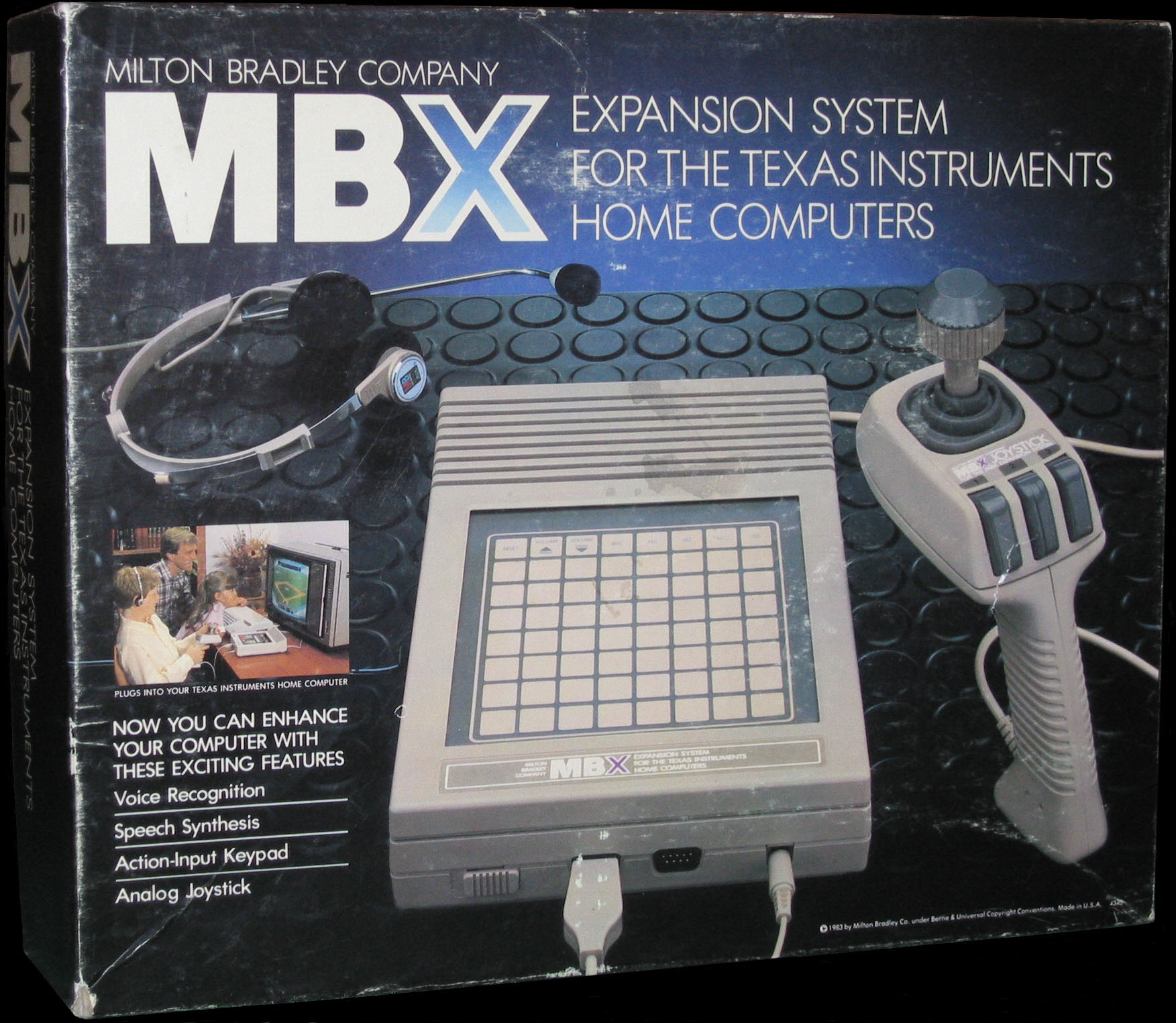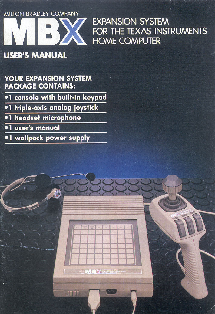 ![]() Probably most of you that come across this page have absolutely no idea as to what the MBX Gaming Expansion is, mainly due to the lack of good information available on the Internet for this device. However, the MBX offered so much to gamers back when it was introduced to the public in late 1983 that it only made sense to devote a whole section to it on the TI-99/4A Videogame House. The MBX itself came out around September 1983 and was discontinued shortly thereafter due to the infamous Video Game Crash of 1984. As far as can be determined from the "Control Number" stickers that were placed on the sides of MBX boxes and units, the MBX was manufactured from September - November 1983 (MB8309-MB8311). If anyone out there can confirm a control number earlier or later than the range given above, e-mail us as it would be very helpful to determining exactly how long these systems were in production for! What makes the MBX stand out from other video gaming add-ons (such the Colecovision Driving Controller) is the wide array of special features it brings to the table. The system itself provides ![]() Now that you have an idea as to what the MBX System is, below is a little history provided by Mike Langieri (the creator of the device). According to Mike, the MBX actually started out as a stand-alone game console in 1982 and was ![]() After the switch was made to develop the MBX for the TI-99/4A, Mike Langieri designed the wonderful MBX Joysticks in addition to a number of game titles (Championship Baseball, Bigfoot, Space Bandits, and Terry Turtle's Adventure). According to Mike, "Dave [Winzler] and I worked our butts off making [Championship Baseball] the showcase game for the MBX and perhaps the product we needed to break into the business". After Championship Baseball ![]() By April 1983, when the MBX initially was supposed to be released to the public, Milton Bradley came out with news that there were some delays and the MBX would not be available until later that year. The most likely explanation for this delay was the fact that TI was in the process of changing the color scheme of the TI-99/4A consoles from black/silver to beige. Considering that the MBX systems shown at the January CES were housed in black/silver cases, which at the time matched the current TI-99/4A color scheme, Milton Bradley probably wanted to make sure that at the time of release the MBX and TI consoles matched. Therefore, MB decided to delay the release of the system. By the time the MBX did come to market in September, it was not just in a new beige color but also was completely redesigned to closer match the new design of the TI-99/4A. In hindsight, it's too bad Milton Bradley did not release the MBX earlier as the video game crash of 1984 put an early end to this great gaming system. How the MBX got to be what it was is truly an amazing and interesting story. It's also very interesting to know that when you are playing games with the MBX on the TI-99/4A, you actually are looking at what was to be Milton Bradley's answer to the Atari 2600 and Mattel Intellivision. If you are into classic gaming check out the MBX not just because of all its features and great games, but also because you can see what could have been Atari's next competitor! ![]() This unit is the core of MBX gaming and where all of the special capabilities come together. When Milton Bradley made the MBX they decided to have it basically take the place of the TI-99/4A, since the MBX Headset and Joysticks plug directly into this device instead of the TI console as normally would be the case. But besides simply acting as a fancy interface for all the various gaming devices to plug into, the MBX system also has some unique ![]() Another feature that comes built into the MBX is the action-input keypad. This 64-button membrane pad allows the player to control games by using programmable buttons that change functions depending on the cartridge being played. Not all cartridges can take advantage of this feature, but the ones that do come packaged with overlays that show which buttons perform what functions. The best example of the action-input keypad's use in a game is Championship Baseball. The overlay for this game shows which buttons you use to select different types of pitches, set the balls speed, and also which player in the outfield you want to have catch the ball. In a different game, however, those same buttons provide totally different functions. This simple swapping of overlays to show what the functions of the action-input keypad is for different games really adds another dimension to the game play. In a way, it almost feels as if you are playing at an arcade since a simple push of specialized buttons provides a feeling that usually one can only achieve on an arcade machine. The MBX system itself provides the video game player with some truly unique gaming options, many of which were not available to the public at the time of its release. Perhaps the biggest plus to the system is that you do not need to use all of the options available in every game, such as the ability to play with or without speech recognition. But I have to admit, it's a lot more fun to play with all of the options! ![]() When Milton Bradley designed the MBX system for the TI-99/4A, they could have simply decided not to develop a unique pair of joysticks for it. But, luckily for video game enthusiasts they didn't take the easy way out! The MBX joystick is truly a wonderful controller due to all of the bells and whistles that ![]() One of the many aspects that Milton Bradley touted back when the MBX was first released was the fact that the joysticks provided 360° analog control. This meant that you could rotate objects on the screen completely around by twisting the rotation knob to the left or right. It's important to mention that not every game made for the MBX took advantage of the 360° capabilities, but the games that did (such as Superfly and Championship Baseball) al